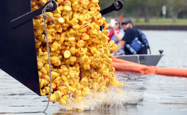Vypouštění tisíců plastových kachniček do řeky Alzette v Lucembursku rozvířilo debatu: Je charitativní závod dobrou věcí, nebo ekologickým problémem?