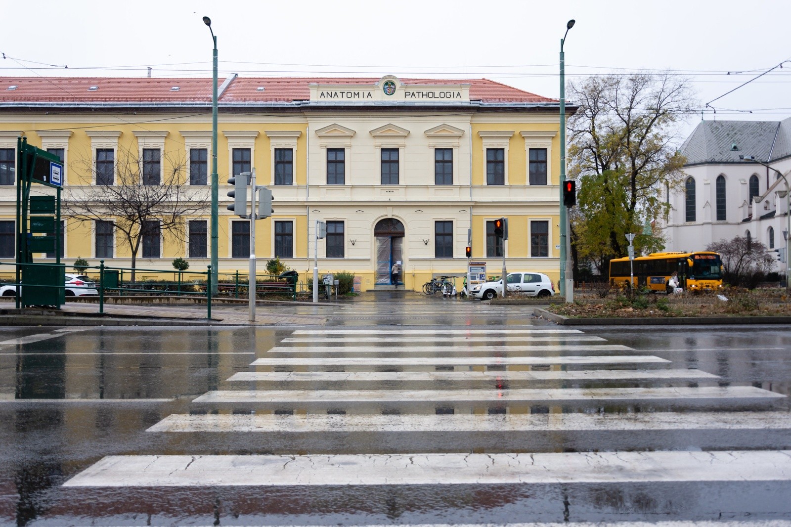 Anatomický ústav zasahuje hluboko vedle kostela Rókusi směrem k náměstí Mars, a proto renovace fasády téměř kompletně změnila pohled na ulici, což není na škodu. Nicméně, hasičský wall zůstává stále původní, a tak je možno spatřit původní žlutou barvu budovy.